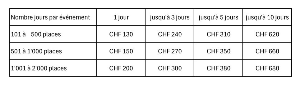 Tableau des primes pour Restaurants, Cantines et Tentes